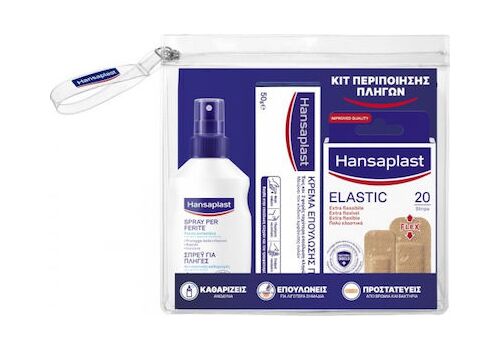 Hansaplast Wound Care Kit Elastic Strips 20pcs & Wound Spray 100ml & Wound Healing Cream 50gr