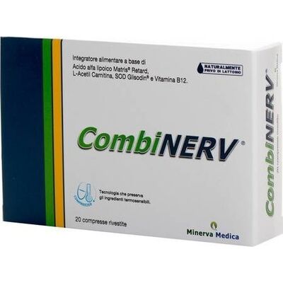 To COMBINERV αποτελεί ένα καινοτόμο τετραπλό συνδυασμό 2 αντιοξειδωτικών του α-λιποϊκού οξέος (ALA) και του υπεροξείδιου της δισμουτάσης (SOD) μαζί με ακέτυλο-καρνιτίνη και Βιταμίνη Β12. Αποτελεί ένα ειδικά σχεδιασμένο συμπλήρωμα διατροφής για να υποστηρίζει τη νευρική λειτουργία και να βοηθά στην αντιμετώπιση του νευροπαθητικού άλγους.