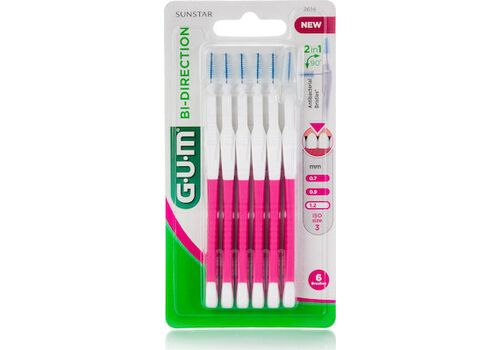 Το μεσοδόντιο βουρτσάκι GUM® Bi-Direction έχει έναν έξυπνο περιστρεφόμενο σχεδιασμό που επιτρέπει τη κλίση σε δύο διαφορετικές θέσεις ώστε να μπορείτε να καθαρίσετε τα διάφορα μέρη του στόματός σας. Σας συνιστούμε να το χρησιμοποιείτε τουλάχιστον μία φορά την ημέρα, κατά προτίμηση μετά το βραδινό σας γεύμα.