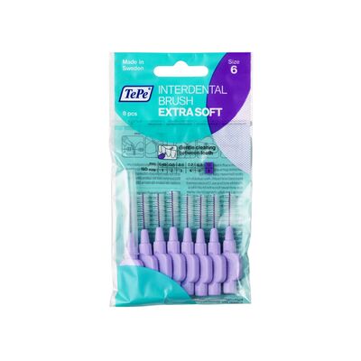 Μωβ μεσοδόντιο βουρτσάκι μέγεθος 6 με πλάτος 1.1 χιλιοστά σχεδιασμένο για να καθαρίζει τα κενά μεταξύ των δοντιών, όπου μια κανονική οδοντόβουρτσα δεν μπορεί να φτάσει.