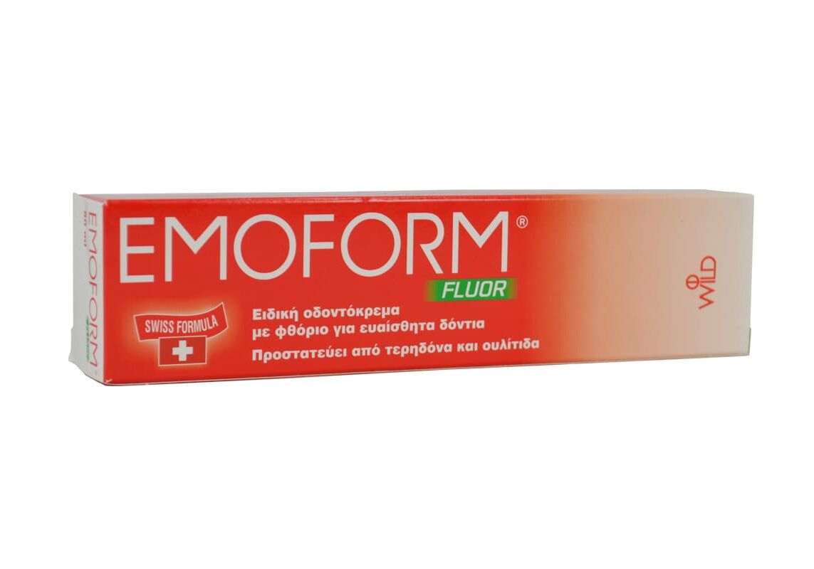 Emoform Fluor toothpaste for daily use is intended for sensitive teeth and protects against caries and gingivitis.