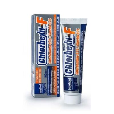Η Intermed Chlorhexil-F Toothpaste είναι αντιβακτηριδιακή φθοριούχος οδοντόπαστα με χλωρεξιδίνη, για την καθημερινή ουλοοδοντική φροντίδα, την αποτελεσματική καταπολέμηση της ουλοοδοντικής μικροβιακής πλάκας, την ενδυνάμωση και προστασία δοντιών, την σύσφιγξη των ούλων και μείωση ουλορραγιών χάρη στα βότανα που περιέχει .