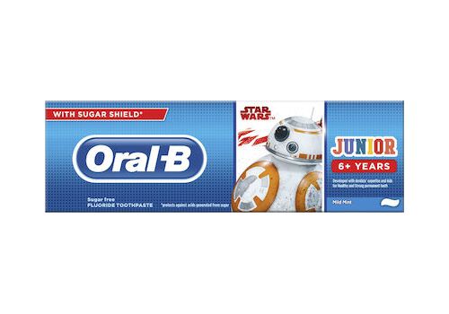 Η οδοντόκρεμα Oral-B Junior με χαρακτήρες από το Star Wars δημιουργήθηκε με τη βοήθεια οδοντιάτρων, για να δώσει στα παιδιά τη δυνατότητα να αναλάβουν τη στοματική τους υγιεινή. Προστατεύει τα δόντια από τα οξέα των σακχάρων του καθημερινού φαγητού.