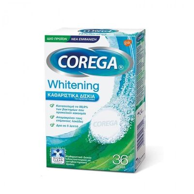 Corega Whitening - Καθαριστικά Δισκία Οδοντοστοιχιών, 36 ταμπλέτες