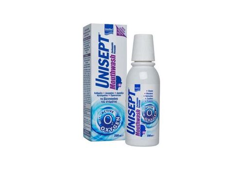 Το Intermed Unisept Mouthwash είναι μοναδικά σχεδιασμένο καθημερινό στοματικό διάλυμα, το οποίο χάρη στο ενεργό οξυγόνο προσφέρει πολλαπλή δράση : αντιμικροβιακή, καθαριστική, επουλωτική, ανακουφιστική και συμβάλει με τον τρόπο αυτό στην καθημερινή υγιεινή φροντίδα & την αντισηπτική προστασία του στόματος ενώ παράλληλα επουλώνει και ανακουφίζει από τον πόνο που μπορεί να προκαλέσουν άφθες, έλκη & πληγές της στοματικής κοιλότητας οποιασδήποτε αιτιολογίας .