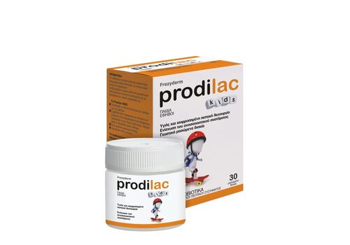 Προβιοτικό, κατάλληλο για παιδιά και εφήβους από 2 έως 16 ετών, για τη διατήρηση της υγιούς ισορροπίας και φυσιολογικής λειτουργίας της εντερικής μικροχλωρίδας κατά την περίοδο λήψης αντιβιοτικών, της γαστρεντερίτιδας, της ίωσης, της δυσκοιλιότητας, της αλλαγής διατροφής και της αλλαγής περιβάλλοντος κατά τη διάρκεια ταξιδιού. Παράλληλα, το Frezyderm Prodilac Kids προλαμβάνει καθώς και βελτιώνει τα συμπτώματα της ατοπίας, της αλλεργικής ρινίτιδας, της ατονίας, της τερηδόνας και της κόπωσης από μελέτη ή άθληση.