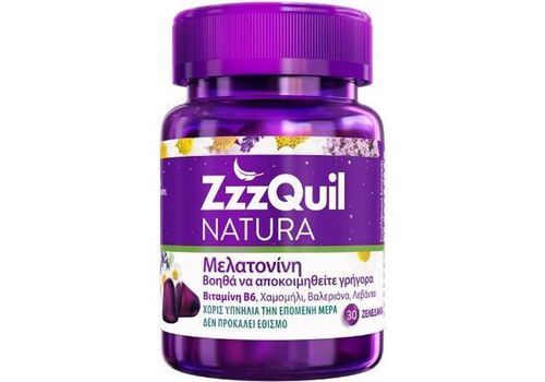 Το ZzzQuil Natura είναι ένα συμπλήρωμα διατροφής το οποίο συνδυάζει μελατονίνη, βιταμίνη Β6 και φυτικά εκχυλίσματα σε μορφή ζελεδιού για γρήγορο, φυσικό ύπνο χωρίς να προκαλεί υπνηλία. Έχουν σχεδιαστεί για να βοηθήσουν άτομα που αντιμετωπίζουν δυσκολίες στον ύπνο λόγω άγχους, jet lag ή ακανόνιστου προγράμματος.