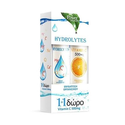 Power Health Hydrolytes with Stevia Συμπλήρωμα Διατροφής με Ηλεκτρολύτες για Ενυδάτωση του Οργανισμού 20 Αναβράζοντα Δισκία + ΔΩΡΟ Vitamin C 500mg 20 Αναβράζοντα Δισκία