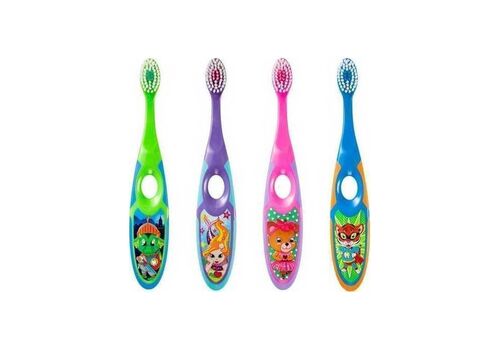 Στρογγυλή κεφαλή με έξτρα μαλακές ίνες σχεδιασμένες για να καθαρίζουν τα πρώτα δοντάκια του, καθώς και μια ένδειξη για την θέση και ποσότητα της οδοντόκρεμας (μπλε ίνες).