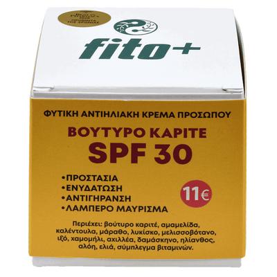 Η φυτική αντηλιακή κρέμα προσώπου της Fito+ με βούτυρο καριτέ ενυδατώνει, έχει αντιγηραντική δράση, προσφέρει λαμπερό δέρμα.