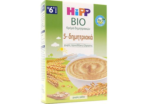 Hipp Bio Κρέμα 5 Δημητριακών 200gr - Χωρίς Προσθήκη Ζάχαρης & Χωρίς Γάλα Από Τον 6ο Μήνα