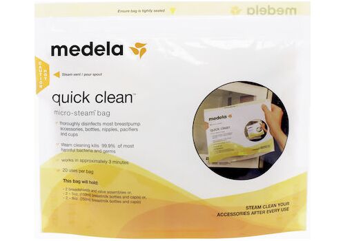 Ασφαλή, γρήγορα και πρακτικά. Με τα σακουλάκια αποστείρωσης Quick Clean™ της Medela μπορείτε να αποστειρώσετε όλα τα εξαρτήματα που έρχονται σε επαφή με το μητρικό γάλα, όπως τις φιάλες και τα σωληνάκια σε λιγότερο από τρία λεπτά – μόνο με τρία βήματα στο φούρνο μικροκυμάτων. Η διαδικασία που απαιτείται είναι γρηγορότερη και ευκολότερη από την αποστείρωση με βρασμό.