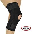 Λειτουργικός νάρθηκας με μεταλλικά ελάσματα, δεξιά και αριστερά από το γόνατο, για ισχυρή συγκράτηση και πρόσθετη σταθερότητα. Ανω και κάτω δετήρες για σύσφιξη ανάλογη με τις απαιτήσεις. Αστάθεια επιγονατίδας, μηνίσκο, μετεγχειρητικά, μετατραυματικά.