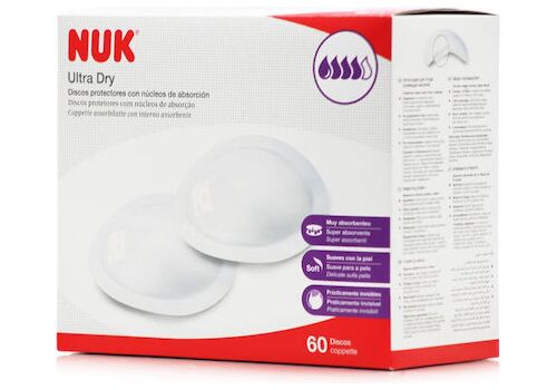 Η NUK σχεδίασε τα ειδικά μελετημένα επιθέματα στήθους Ultra Dry, για να νιώθουν οι μητέρες άνεση και ασφάλεια σε καθημερινή βάση. Τα επιθέματα διαθέτουν εξαιρετικά απορροφητικές ιδιότητες λόγω της ιδιαιτέρως απορροφητικής εσωτερικής επένδυσης με πυρήνα συγκράτησης της υγρασίας, ενώ προστατεύουν ιδανικά το δέρμα και τα ρούχα σας. Συγχρόνως, είναι ιδιαιτέρως φιλικά προς το δέρμα, αφού είναι κατασκευασμένα από απαλά υλικά, που επιτρέπουν στο δέρμα να αναπνέει. Εφαρμόζουν τέλεια στο στήθος και δεν φαίνονται από τα ρούχα χάρη στη λεία και ατσαλάκωτη εξωτερική στοιβάδα που διαθέτουν. Οι αυτοκόλλητες ταινίες NUK συγκρατούν τα επιθέματα σταθερά μέσα στο στηθόδεσμο.