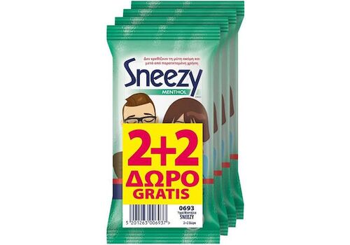 Sneezy Menthol 2+2 ΔΩΡΟ Υγρά Μαντηλάκια για το Κρυολόγημα, 48τμχ