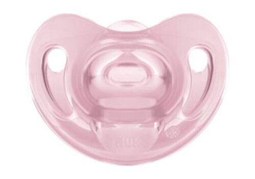 Πιπίλα της εταιρείας Nuk με θηλή από σιλικόνη, υλικό εύκαμπτο και ανθεκτικό στον χρόνο που αντέχει στις ακραίες θερμοκρασίες.