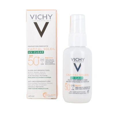 Vichy Capital Soleil UV-Clear Water Fluid Anti-imperfections SPF50+ Λεπτόρρευστο Αντηλιακό Προσώπου κατά των Ατελειών, 40ml