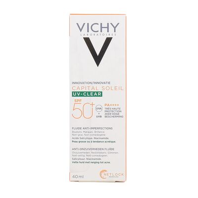 Το Vichy Capital Soleil UV-Clear SPF50+ αποτελεί ένα αντηλιακό προϊόν που προσφέρει προστασία από την UVA και UVB ακτινοβολία. Είναι κατάλληλο για ευαίσθητες και λιπαρές επιδερμίδες, καθώς περιέχει ένα σύμπλεγμα από φυσικά συστατικά που βοηθούν στην προστασία και την ενυδάτωση του δέρματος.