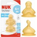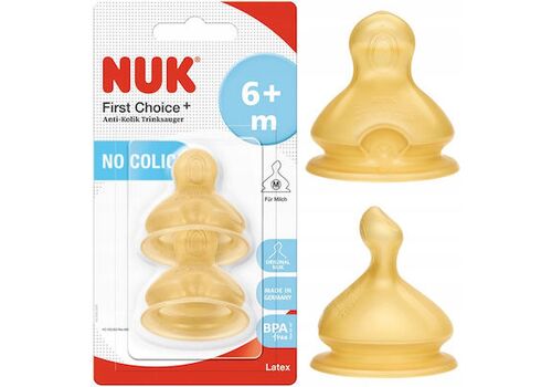 Θηλές της εταιρίας Nuk, κατάλληλες για μωράκια 6+ μηνών. Το προϊόν είναι κατασκευασμένο από καουτσούκ, υλικό ιδιαίτερα ελαστικό και ανθεκτικό σε δαγκωματιές. Το καουτσούκ επηρεάζεται πιο εύκολα από τη θερμοκρασία και τα λιπαρά που περιέχουν το γάλα και οι τροφές, με αποτέλεσμα όταν φθαρεί να κολλάει. Οι θηλές κατά των κολικών είναι σχεδιασμένες με τέτοιο τρόπο ώστε να μειώνουν την καταπόση αέρα κατά το τάισμα και την εμφάνιση κολικών που ταλαιπωρούν το μωράκι σας.