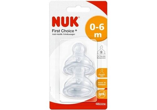 Θηλές της εταιρίας Nuk, κατάλληλες για μωράκια 0+ μηνών. Το προϊόν είναι κατασκευασμένο από σιλικόνη, υλικό άοσμο, άγευστο και ανθεκτικό στη θερμοκρασία. Οι θηλές κατά των κολικών είναι σχεδιασμένες με τέτοιο τρόπο ώστε να μειώνουν την καταπόση αέρα κατά το τάισμα και την εμφάνιση κολικών που ταλαιπωρούν το μωράκι σας.