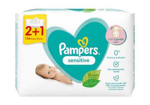 Μωρομάντηλα Pampers Sensitive - 3 συσκευασίες x 52 Μωρομάντηλα (156 Τεμάχια)