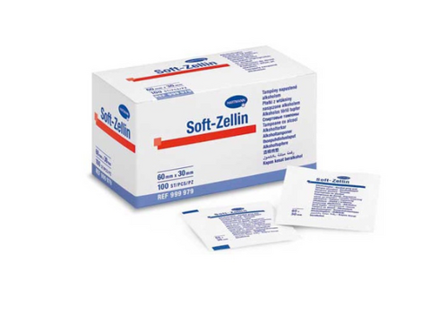 Μαντηλάκια οινοπνεύματος Hartmann Soft Zellin από μαλακό μη υφασμένο ύφασμα, έτοιμο προς χρήση και εμποτισμένο με 0,4 ml ισοπροπυλικής αλκοόλης (70% ν / ν). Αρχικό μέγεθος 60×30 mm, διπλωμένο σε 30×30 mm. Μετά το άνοιγμα της συσκευασίας είναι έτοιμα προς χρήση. Κάθε συσκευασία περιέχει 100 τεμάχια. Για καθαρισμό του δέρματος πριν από υποδόριες ενέσεις και αιμοληψία μέσω τριχοειδών.