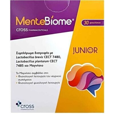 Το Cross Pharmaceuticals MenteBiome Junior για το Νευρικό Σύστημα 30 φακελίσκοι είναι ένα μοναδικό διατροφικό συμπλήρωμα σχεδιασμένο ειδικά για την υποστήριξη της φυσιολογικής λειτουργίας του νευρικού συστήματος των παιδιών.