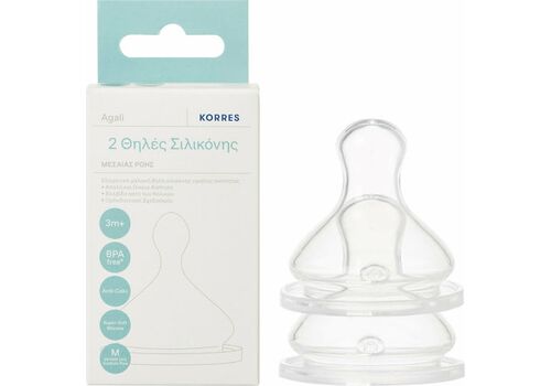 Οι Korres Θηλές Σιλικόνης Μεσαίας Ροής 3m+ είναι κατάλληλες για μπιμπερό Korres με πλατύ λαιμό. Είναι σχεδιασμένες για βρέφη άνω των 3 μηνών και νήπια έως 24 μηνών. Πρόκειται για υψηλής ποιότητας προϊόν με πολλά πλεονεκτήματα: