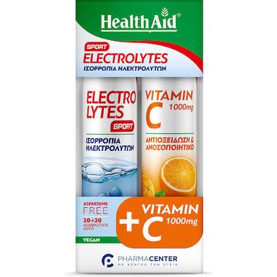 Health Aid Promo Electrolytes Sport Συμπλήρωμα Διατροφής Ηλεκτολυτών 20 αναβράζοντα δισκία & Vitamin C 1000mg Συμπλήρωμα Διατροφής Με Βιταμίνη C 20 αναβράζοντα δισκία.
