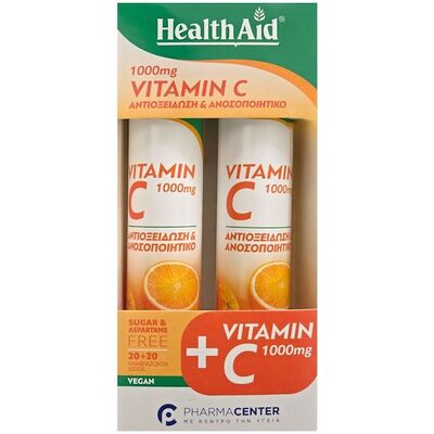 Health Aid Promo Vitamin C 1000mg Orange Συμπλήρωμα Διατροφής Βιταμίνης C για Ενίσχυση του Ανοσοποιητικού με Ισχυρές Αντιοξειδωτικές Ιδιότητες με Γεύση Πορτοκάλι 40 Effer.tabs (2x20 Effer.tabs).