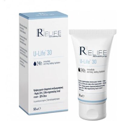 Η Relife U-Life 30 είναι μία ενυδατική και αναγεννητική κρέμα χεριών με ουρία 30%. Αποτελεί ιδανική επιλογή για ταλαιπωρημένα χέρια με σκληρύνσεις, προσφέροντας ενυδάτωση που διατηρείται για 24 ώρες.