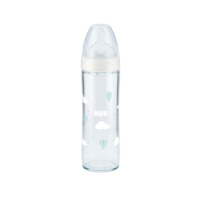 Nuk Γυάλινο Μπιμπερό New Classic Κατά των Κολικών με Θηλή Σιλικόνης 240ml για 0-6 μηνών Λευκό