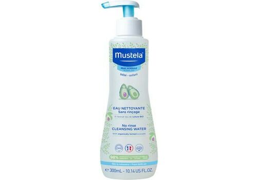 Το απαλό νερό καθαρισμού χωρίς ξέβγαλμα (μικυλλιακό νερό) Mustela Eau Nettoyante Sans Rincage,είναι κατάλληλο για το πρόσωπο και την περιοχή της πάνας και για χρήση από τη στιγμή της γέννησης.