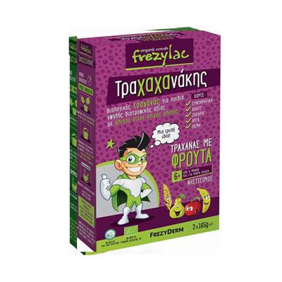 Αποτελεί τη σύγχρονη πρόταση της FREZYDERM που μετατρέπει τον διαχρονικά αγαπημένο τραχανά με την υψηλή περιεκτικότητα σε φυτικές ίνες, βιταμίνες και ιχνοστοιχεία, σε βιολογική βρεφική και παιδική τροφή. Παρασκευασμένος με την μέθοδο ενσωμάτωσης ολόκληρων των φρούτων στον καρπό του σιταριού,ο frezylac Τραχαχανάκης αποτελεί μία νέα πυκνή θρεπτικά τροφή που καλύπτει τις ανάγκες κάθε ηλικίας. Με βιταμίνες, μέταλλα, αντιοξειδωτικά συστατικά ο θρεπτικός «πλούτος» των φρούτων συγκεντρώνεται στον frezylac Τραχαχανάκη.Τέλος, ως προϊόν ολικής άλεσης, ο frezylac Τραχαχανάκης διαθέτει τα ωφέλιμα θρεπτικά συστατικά του σιταριού που αλέθεται διατηρώντας το σύνολο των κόκκων του. Για να σας προσφέρει και απολαυστική κρεμώδη υφή με εύκολο βράσιμο, ο τραχανάς με φρούτα έχει το ιδανικό μέγεθος κόκκων.
