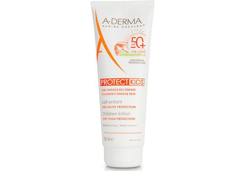 Το A-Derma Protect Kids Lait enfant SPF50+ είναι ένα παιδικό αντιηλιακό γαλάκτωμα προσώπου και σώματος που προστατεύει από τις ακτίνες UVB και UVA, ενυδατώνει και ενισχύει τον επιδερμικό φραγμό.