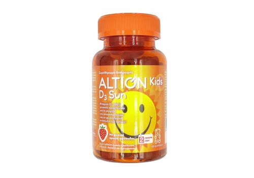 Altion Kids D3 Sun Παιδικό Συμπλήρωμα Διατροφής με Βιταμίνη D3 Φυσικής Προέλευσης για Τόνωση Ανοσοποιητικού, Σωστή Ανάπτυξη Οστών & Δοντιών, 60 gummies