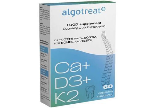 Το Algotech Algotreat Ca + D3 + K2 είναι ένα διατροφικό συμπλήρωμα με ασβέστιο, βιταμίνη D και βιταμίνη K, συστατικά που στο σύνολό τους υποστηρίζουν τη διατήρηση της υγείας των οστών και των δοντιών.
