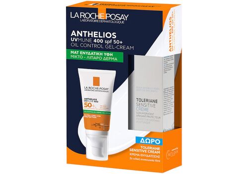 La Roche Posay Promo Pack Anthelios Uvmune 400 Oil Control Gel Cream SPF50+ Αντηλιακή Κρέμα Προσώπου Για Ματ Αποτέλεσμα SPF50+ 50ml & Toleriane Sensitive Eνυδατική Κρέμα Προσώπου για Ευαίσθητο Δέρμα 15ml