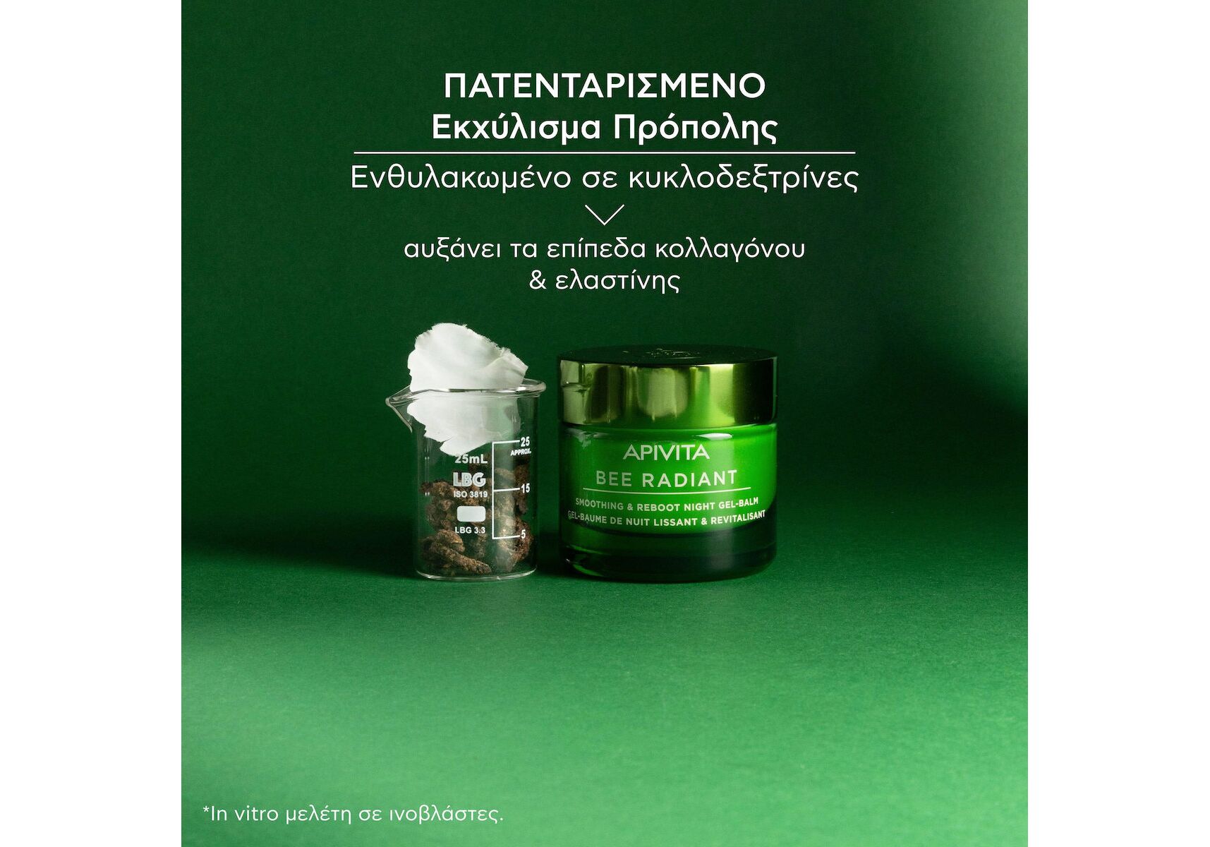 - Βελτιώνει τη σύνθεση κολλαγόνου, ελαστίνης και υαλουρονικού οξέος, προσφέροντας μια καλά ενυδατωμένη, πιο ελαστική και νεανική επιδερμίδα, χάρη στο πατενταριμένο εκχύλισμα πρόπολης, το φυτικό γλυκογόνο και τη φυσική γλυκοΐνη.