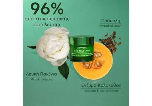 Apivita Bee Radiant White Peony & Patented Propolis Ενυδατικό & Αντιγηραντικό Balm Προσώπου Νυκτός με Υαλουρονικό Οξύ 50ml