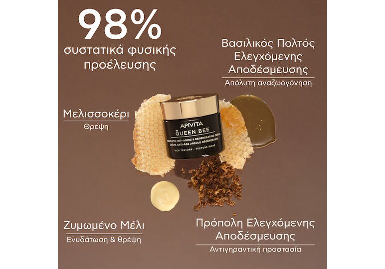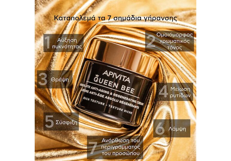 Apivita Queen Bee Absolute Anti Aging & Regenerating Rich Ενυδατική & Αντιγηραντική Κρέμα Προσώπου Ημέρας για Ξηρές Επιδερμίδες 50ml