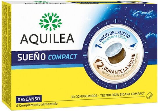 Το Aquilea Sueño Compact είναι ένα συμπλήρωμα διατροφής για την αϋπνία που συνδυάζει τη μελατονίνη με 3 εκχυλίσματα βοτάνων που συμβάλλουν στη χαλάρωση και στην καταπολέμηση των διαταραχών του ύπνου.