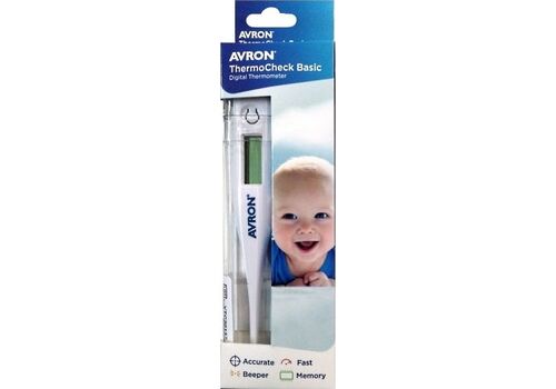 Το Avron ThermoCheck Basic είναι ένα αδιάβροχο ψηφιακό θερμόμετρο με αποτελέσματα μετρήσεων σε 60 δευτερόλεπτα και με ηχητική ειδοποίηση ολοκλήρωσης της μέτρησης. Κατάλληλο για μέτρηση από από τη μασχάλη, το στόμα ή τον πρωκτό.