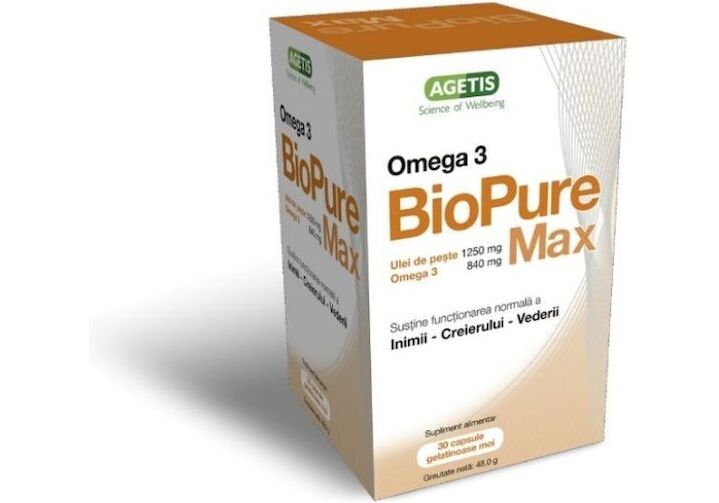 Agetis BioPure Max - Ωμέγα 3 ιχθυέλαιο υψηλής ποιότητας και συγκέντρωσης 1250MG, 60Tabl