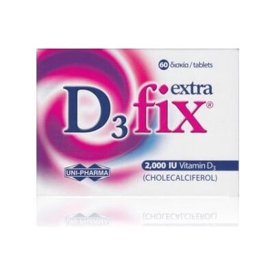 Το Uni-Pharma D3 Fix 2000 IU είναι ένα συμπλήρωμα διατροφής που περιέχει βιταμίνη D3 με τη μορφή της χοληκαλσιφερόλης, που είναι η ενεργή μορφή της βιταμίνης D.