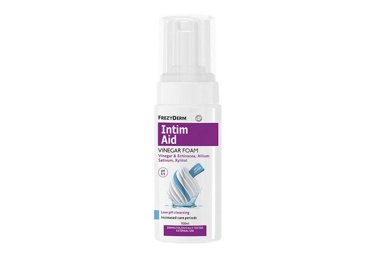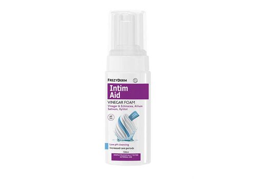 Το Frezyderm Intim Aid Vinegar Foam είναι ένα αφρός καθαρισμού με χαμηλό pH και εξειδικευμένη σύνθεση για τις ανάγκες της ευαίσθητης περιοχής όταν χρησιμοποιούνται αντιβακτηριακές αγωγές.