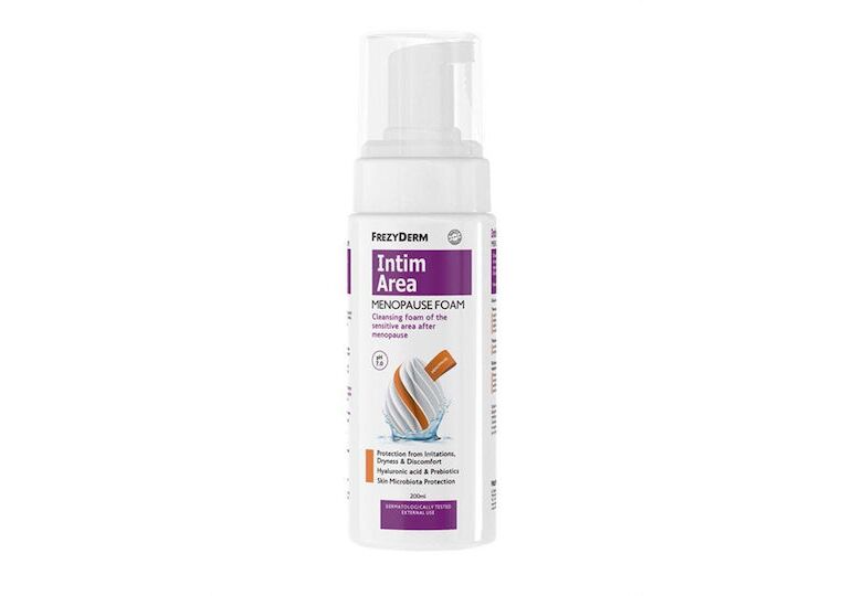 Ο Frezyderm Intim Area Menopause Foam αφρός καθαρισμού με pH7 και ήπια επιφανειοδραστικά συστατικά, παρέχει καθαρισμό και περιποίηση της ευαίσθητης περιοχής, ενώ παράλληλα προστατεύει από ερεθισμούς, ξηρότητα και τοπική δυσανεξία.