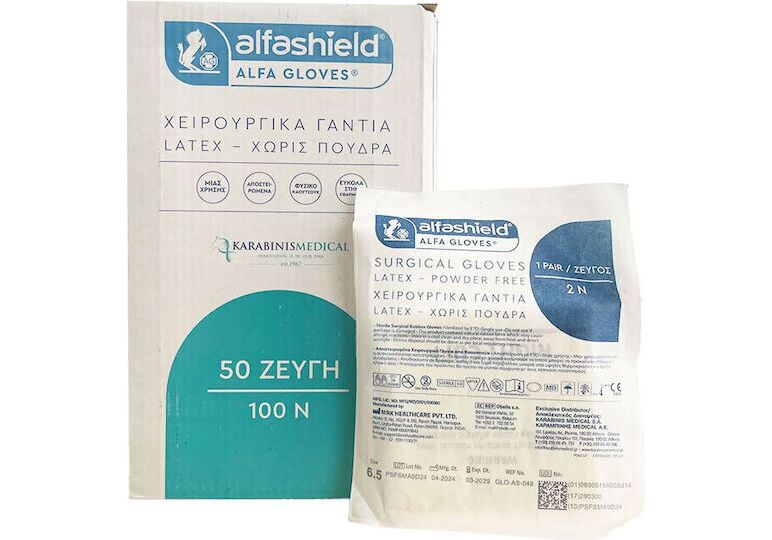 Alfashield Alfa Gloves Αποστειρωμένα Χειρουργικά Γάντια Latex χωρίς Πούδρα Μέγεθος 8.0, 50 ζεύγη