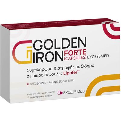 Excess Med Golden Iron Forte 30 caps, Συμπλήρωμα Διατροφής Σιδήρου 30 κάψουλες