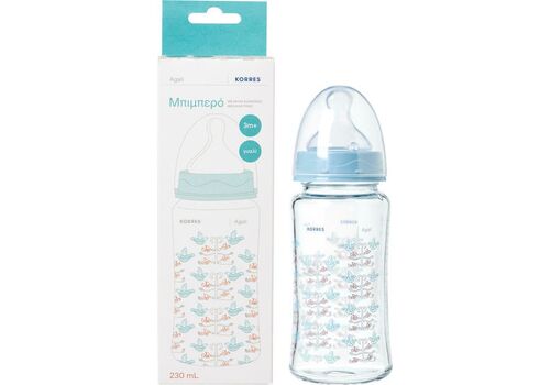Korres Baby Γυάλινο Βρεφικό Μπιμπερό με Θηλή Σιλικόνης Μεσαίας Ροής 3m+ 230 ml